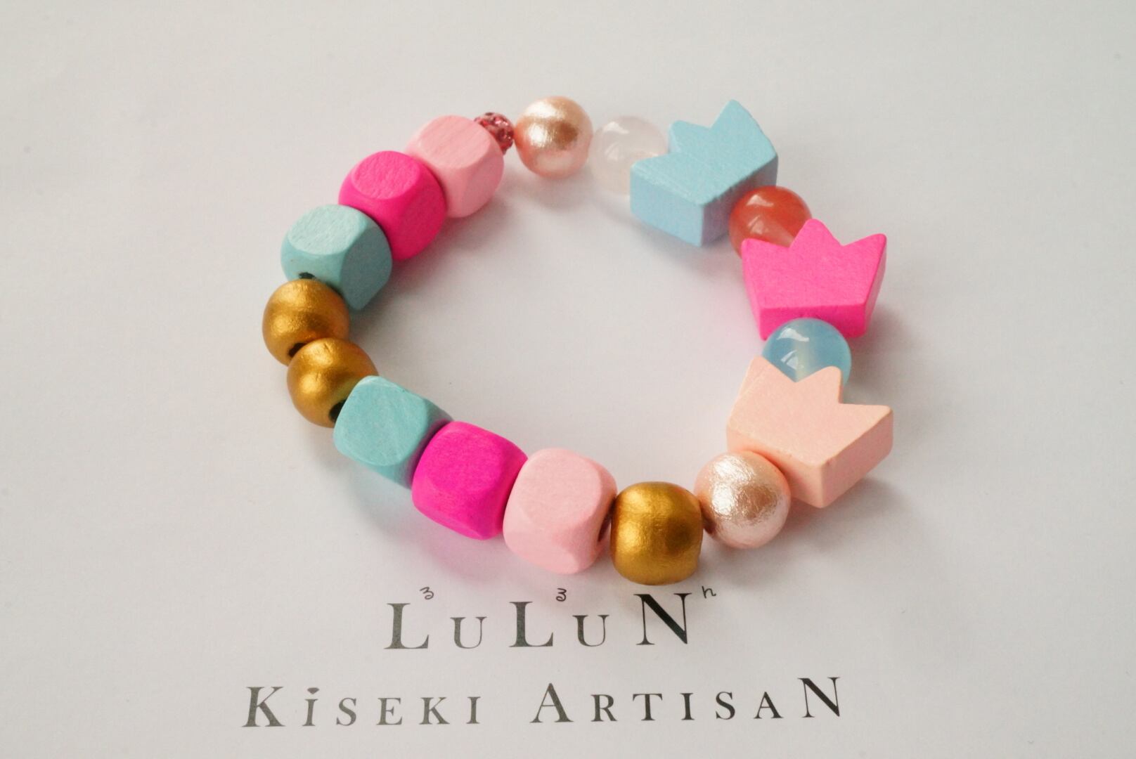 LuLuNキッズブレスレットStone&Wood(みずのおんぷシリーズ5)